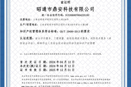 2003年11月10日,昭通市鼎安科技有限公司成立,初始主要從事第三方安全工程技術(shù)服務(wù),經(jīng)多年運(yùn)營,發(fā)展為多專業(yè)綜合科技平臺(tái),為社會(huì)提供多種專業(yè)技術(shù)服務(wù)工作。 現(xiàn)公司注冊資金為1200萬元,公司法定代表人:毛衛(wèi)旭。公司主要業(yè)務(wù):安全評價(jià)、安全標(biāo)準(zhǔn)化評審、安全工程技術(shù)服務(wù);環(huán)境監(jiān)測、職業(yè)衛(wèi)生檢測、檢驗(yàn);法律訴訟及非訴訟服務(wù);司法鑒定、固定資產(chǎn)投資項(xiàng)目節(jié)能服務(wù);工程咨詢;工程測量測繪;安全教育培訓(xùn)等。是安全生產(chǎn)服務(wù)、安全教育培訓(xùn)機(jī)構(gòu),也是環(huán)境監(jiān)測和職業(yè)衛(wèi)生服務(wù)機(jī)構(gòu),同時(shí)也是綜合的檢測檢驗(yàn)、綜合科技平臺(tái)服務(wù)機(jī)構(gòu)。多年來為公、檢、法、司、軍、警、海關(guān)、仲裁、安監(jiān)、工礦商貿(mào)企業(yè)、社會(huì)團(tuán)體及個(gè)人提供多專業(yè)技術(shù)服務(wù)。